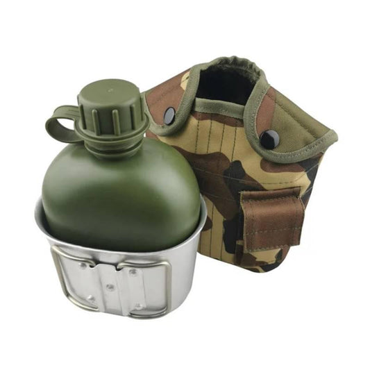 Cantimplora Táctica Militar + Vaso Taza Aluminio
