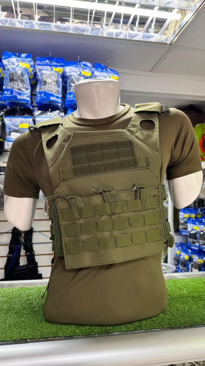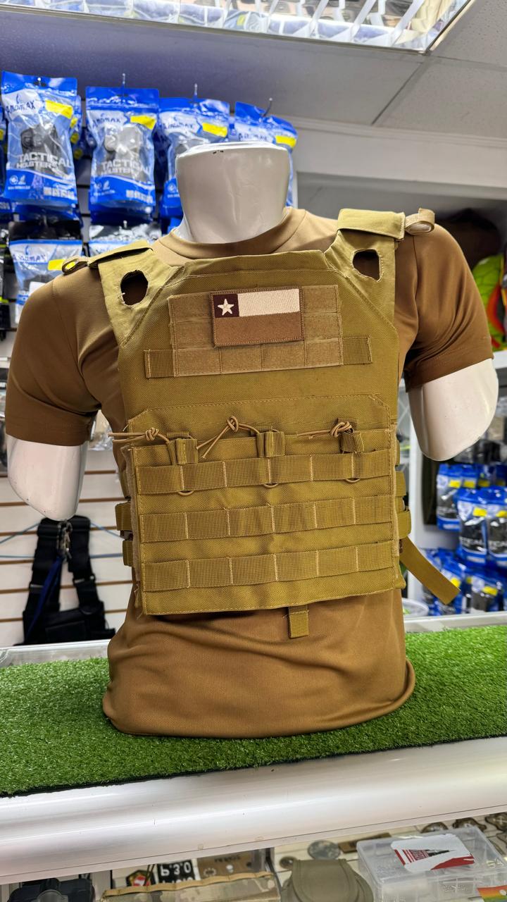 Chaleco Tactico abierto en costados, con sistema molle, incluye Pouch 3 cargadores. con porta placa, incluye placas dummies.