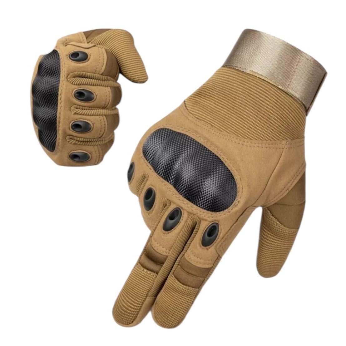 Guantes con protecciones rígidas en nudillos reforzados en palmas.