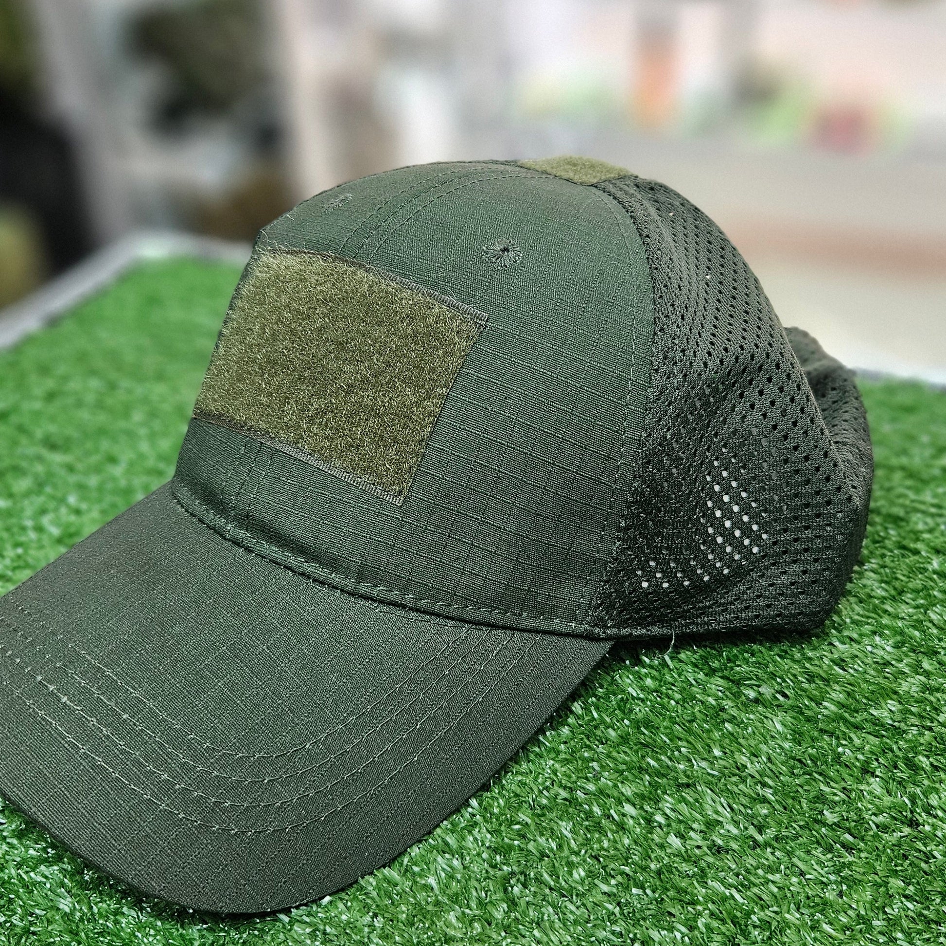 Gorro Jocky tactico de malla y con velcro para parches, color verde